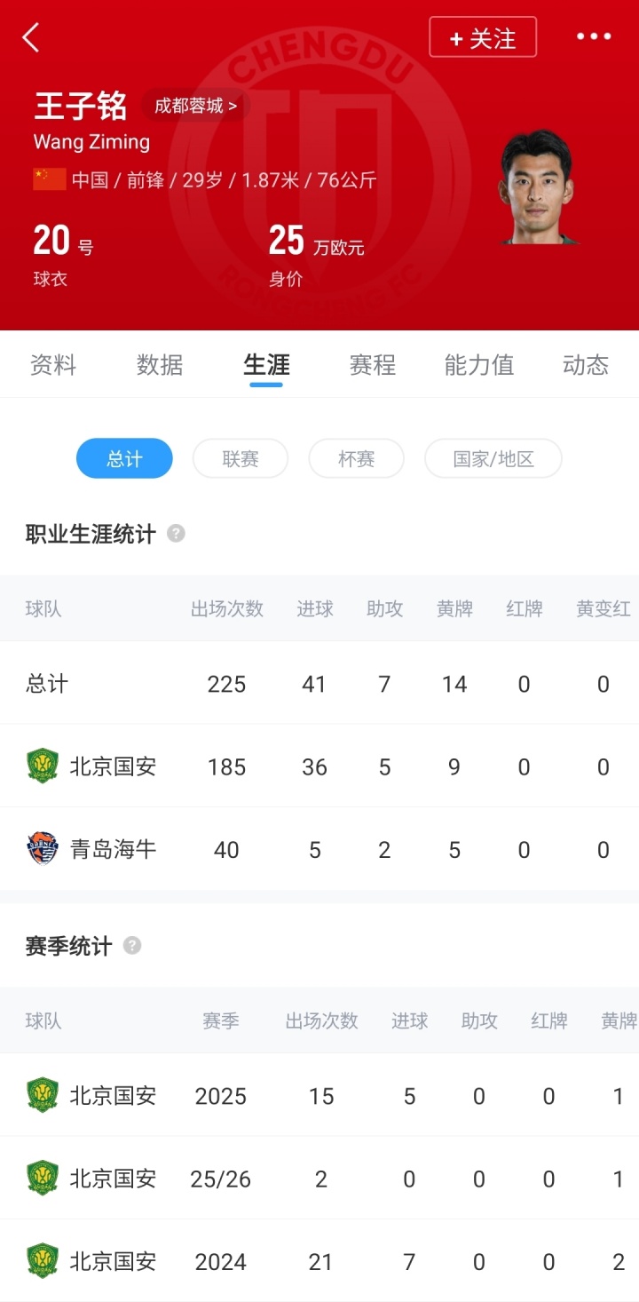 王子铭擅长在门前捕捉机会,战术执行力强,能够适应不同的进攻体系。加盟成都蓉城后,王子铭有望在锋线上提供更多跑动与战术支点作用,增强球队在禁区内的接应和终结能力。他的比赛经验和关键战履历,也将为蓉城的进攻体系带来补充,尤其在密集赛程中丰富球队的战术选择与阵容深度。